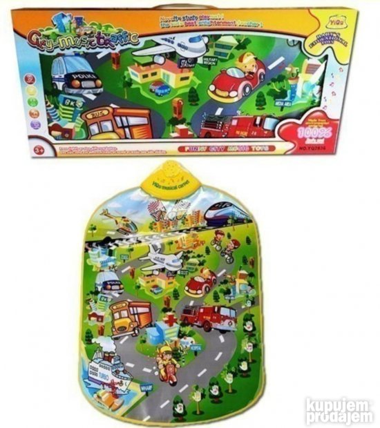 Muzicki deciji tepih Gradski saobracaj je fenomenalna igracka za malu decu koja će se uz pomoć ovog tepiha upoznati sa zvucima većine učesnika u saobraćaju. Deca će igrajući se na tepihu zvučno vizuelnom metodom veoma lako naučiti i spoznati sve učesnike u saobraćaju od bicikla auta autobusa do voza broda hilihoptera i drugih učesnika u saobraćaju. Ovaj muzicki tepih reprodukuje preko 10 zvukova. U sebi ima i funkciju muzičkog piana.