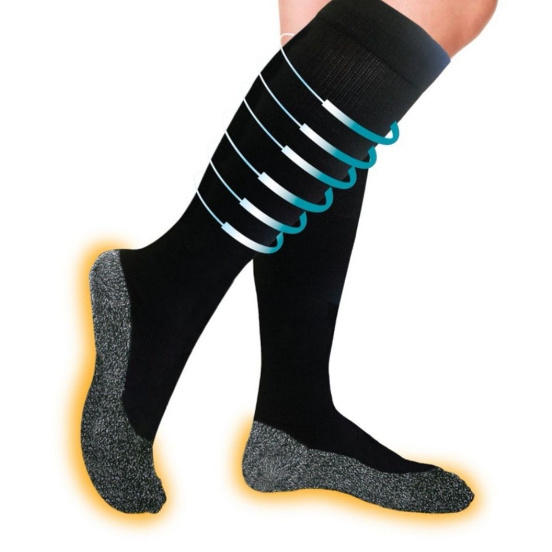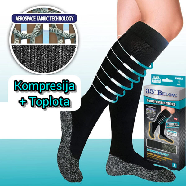 Čarape za cirkulaciju Below 35 Duge dizajnirane su da ublaže bolove i umor u kolenima i spreče proširene vene. Ove čarape održavaju stopala i noge toplim i udobnim, zadržavajući toplinu vlastitog tela. Zahvaljujući kompresionom dizajnu, stimulišu cirkulaciju krvi, smanjuju otok i doprinose osećaju topline i udobnosti.